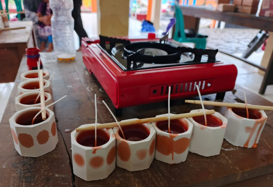 Pembuatan lilin aromaterapi dilaksanakan di Balaidesa Sidodadi Kec.Pekalongan kab.Lampung Timur.